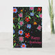 Fun Flowers and Hearts Black Happy Birthday Card