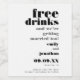 A fun way to invite your guests to save your wedding date which is fully customisable. The text is all aligned to the right, with bold black typography at the top, Free Drinks followed by And We’re Getting Married Too in grey, then your names, wedding date and location in a mix of black and grey. You can change text and background to different colours if you wish via the Customise Further option.