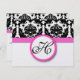 Vintage Modern Black and White Floral Damask Patterns with Bright Fuchsia Pink Trim Wedding Invitations. Perfect for Rococo Baroque, Mediaeval Renaissance, Art Deco Art Nouveau, Roaring 20s Gatsby, Victorian Weddings or Elegant Farmhouse Wedding Themes Venues.