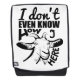 Cool fun black on white text design with pun words saying I Don't Even Know How I Goat (Got) Here and with a cute illustration of a smiling goat face.