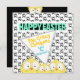 With three cartoon, crazy eyed chickens, on a black and white chicken foot print background in front and another three crazy chickens peeking-in, on a black background on the back, this one is just so much fun!