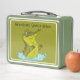 This is a standard metal lunchbox that appears to work just fine. We designed this box ourselves with an uploaded photo and custom text on the front and back. It looks absolutely beautiful except the front of the lunchbox is not centered like it shows in the photo. The print borders don't align with the inset flat part of the box where the preview photo online showed it perfectly centered in there. The back looks nice and centered though.