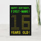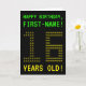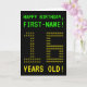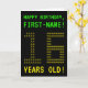 The front of this nerdy, customisable birthday card design features the messages "HAPPY BIRTHDAY" and "16 YEARS OLD!", along with a customisable recipient name. The messages on the front have a pixelated, old school computer game style appearance. The digits of the large number "16" on the front consist of smaller sized digits "1" or "6", giving an ASCII art inspired look. The inside features a personalised birthday greeting message. A geeky style, customised birthday greeting card like this might be a fun way to celebrate somebody’s sixteenth birthday. [~Z0000366]