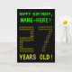 The front of this geeky, editable birthday card design features the messages "HAPPY BIRTHDAY" and "27 YEARS OLD!", along with a personalised recipient name. The messages on the front have a look inspired by pixelated vintage/classic/retro video games. The digits of the large number "27" on the front consist of smaller sized "2" or "7" digits, giving an ASCII art inspired look. The inside features a birthday greeting message that can be edited. A nerdy style, customisable birthday greeting card like this might be a fun way to send a birthday message to somebody who is celebrating their twenty seventh birthday. [~Z0000366]