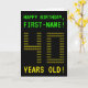 The front of this nerdy, customisable birthday card design features the messages "HAPPY BIRTHDAY" and "40 YEARS OLD!", along with a personalised recipient name. The messages on the front have a look inspired by pixelated vintage video games. The digits of the large number "40" on the front consist of smaller sized "4" or "0" digits, giving an ASCII art inspired look. The inside features a birthday greeting message that can be customised. A geeky style, customised birthday greeting card like this might be given to somebody who is celebrating their fortieth birthday. [~Z0000366]