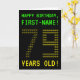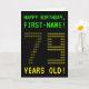 The front of this nerdy, customisable birthday card design features the messages "HAPPY BIRTHDAY" and "79 YEARS OLD!", along with a personalised recipient name. The messages on the front have a look inspired by pixelated retro video games. The digits of the large number "79" on the front consist of smaller sized "7" or "9" digits, giving an ASCII art inspired look. The inside features a birthday greeting message that can be customised. A geeky style, customised birthday greeting card like this might be a silly way to send birthday wishes to somebody who is celebrating their 79th birthday. [~Z0000366]