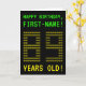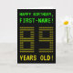 The front of this geeky, personalized birthday card design features the messages "HAPPY BIRTHDAY" and "89 YEARS OLD!", along with a customizable recipient name. The messages on the front have an appearance inspired by pixelated vintage/classic/retro video games. The digits of the large number "89" on the front are themselves made up of smaller sized "8" or "9" digits, giving an ASCII art inspired look. The inside features a personalized birthday greeting message. A nerdy style, personalized birthday greeting card like this might be a fun way to send a birthday greeting to somebody who is celebrating their 89th birthday. [~Z0000366]