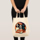 The printing came out very well, better than I had anticipated. The natural color fabric is sturdy with strong seams and comfortable handles. This tote fits easily over my shoulder. As it is filled, the bottom flattens out--very cool! I would buy this product again. This grocery tote holds a lot of groceries! The image quality was very good. The colors were a little darker than I had expected. The darkness may have been due to printing on a natural color fabric rather than on white. The cat design is attractively centered on the tote. The spirit of the design is very lively, just as it appears on the Zazzle website.