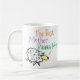 Mug for the best Mother. Funny cartoon of a sheep on the top of a hill. The sheep says "Best Mother Baaa None". Design repeats on both sides