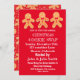 This is custom Gingerbread Cookie swap Christmas party invitation card with three funny gingerbread men on red background .