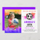 Fun Girl Colourful Pink Soccer Birthday Party Phot Invitation