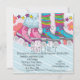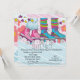 Roller Skating birthday party invitation in fun and funky bright vibrant colours , lines and flowers in the background and a very girly look . with a sketchy illustrative style.