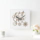 This is a fun and sparkly gold Let it Snow that will add a nice touch to any décor and help celebrate the holidays. Simple and modern and you can change the background colour or change it to round to make this clock customised just for you.