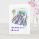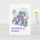 A Get Well card to personalise for a Godson, with a green frog, lying in bed with a hot water bottle and medicine, grapes and flowers all around him, from a handpainted whimsical illustration by Judy Adamson. You can change the inside message if you wish.