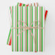 These fun, festive wrapping paper sheets designs feature Christmas inspired green, white, and red coloured stripes patterns. Festive wrapping paper sheets like these might be fun to use when preparing gifts being given in celebration of Christmas.