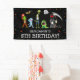 A super fun birthday banner for those born in October - a Halloween Costume Party! Featuring black background, colourful star confetti, cartoon fancy dress costume characters, ghosts, monsters etc. Personalise with name and age of birthday child.