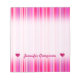 This notepad design features a fun, happy, girly stripes pattern featuring various shades of colours like pink and purple. It also features a personalised name near the bottom, between two heart shapes. [~Z0000101]
