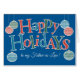 A fun, text-based Happy Holidays card for a Father-in-Law, with Ornaments and Lettering, filled with red, blue and green chevrons and polka dots, outline in white on a bright blue background. There is also a custom front card with this design in case you can't find a card for the specific recipient you're looking for.