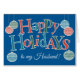 A fun, text-based Happy Holidays card for a Husband, with Ornaments and Lettering, filled with red, blue and green chevrons and polka dots, outline in white on a bright blue background. There is also a custom front card with this design in case you can't find a card for the specific recipient you're looking for.