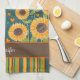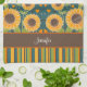 Fun Happy Sunflower Stripes Custom Name Stylish Tea Towel
