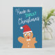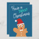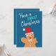 Have a sweet Christmas fun holiday greeting card featuring a cute bitten gingerbread man with a red hat and a white bow tie.