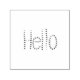 A greeting of "Hello" but with the lettering composed of a hand drawn butterfly script of dark blue instead of a regular font. Simple, but unique.