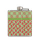 A fun Hip Flask to personalise, with two country-style, mix'n'match patterns of cute red dragons on a green and white check gingham background.
