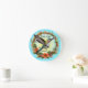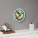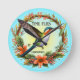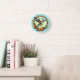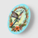 Artistic wall clock featuring a painting of a hummingbird on a floral wreath. Gorgeous as a gift for grandma or for anyone who loves hummingbirds.