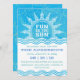 Modern lace sun with a cool abstract background of blue water and sky. Great for a family reunion, bbq, pool, beach, or any summertime celebration. Customise with your own text. Original Illustration by pj_design.
