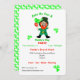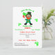 Irish themed party invitation with a funny little leprechaun holding a bunch of balloons and lucky green shamrocks. Suitable for St Patrick's day celebrations, birthday party or any event with a connection to Ireland.