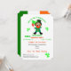 Irish themed party invitation with a funny little leprechaun holding a bunch of balloons and lucky green shamrocks. Suitable for St Patrick's day celebrations, birthday party or any event with a connection to Ireland.