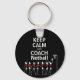 Customizable, keep calm and coach netball keyring with love heart stick figure positions. Fun gift idea for netball coach.