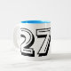 Fun keep calm meme 27th Birthday coffee mug gift. Cool Keep Calm and Carry On meme for 27 year old. Make your own funny age specific cup with custom age number. Cute typographic mugs for men or women. Modern typography template with crown. Blue or custom colour inside.
