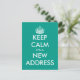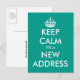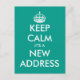 Cute keep calm moving postcard for new address / relocation. Make your own funny keep calm and carry on parody design for your new house. Keepcalm humour for change of address concerning home and business company location. Change quantity to get the cheapest price per post card. Aqua / Turquoise blue or custom colour. Vintage typography template with crown.