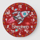 Colourful kids graphic wall clock designed by exclusively by Sarah Trett. Customise with the name of your choice up to 6-7 letters, this example reads Stephen. Would be a great personalised addition to your child's space themed bedroom.