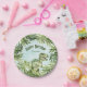 Featuring a a T Rex dinosaur with jungle leaf motifs in a watercolor style. The words "Happy Birthday" are printed across the paper plate with a place for you to personalise with a name. Great for Rawr-Some and Three Rex birthday party themes!
