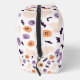This design features a playful and colourful Halloween pattern with a minimalist design. The pattern includes simple, rounded shapes of jack-o'-lanterns, ghosts, skulls, and bats, all scattered across a white background. The colour palette is soft yet vibrant, with pumpkins in shades of orange, ghosts in pale peach, skulls in lavender, and bats in deep purple. Each element has a cute and friendly expression, making the pattern fun and lighthearted, perfect for Halloween decorations or kids' party themes. The overall design is cheerful and festive, capturing the whimsical side of Halloween.