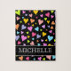 Fun, Loving, Colourful Hearts Pattern + Custom Nam Jigsaw Puzzle