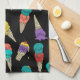 Fun Melty Summer Goth Skull Ice Cream jewel black Tea Towel