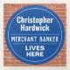 Fun Commemorative Style Wall Plaque Gift in the form of a Glass Coaster for an Merchant Banker. Blue and white plaque. Edit the design to change the wording to suit the gift recipient.