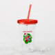 This acrylic drink tumbler with straw and lid has a fun skeleton peeking out from a bright red and green dimensional shape wearing a Santa hat holding Christmas ornaments up to his eyes. Customise the Merry Christmas text with the template on the front and back.