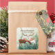 On our holiday-themed sticker/envelope seal, a chocolate-coloured woodland moose and a lovely white and grey deer stand against a watercolor winter green background filled with delicate white snowflakes. Text on the sticker says says: "Merry Christmoose" and "Happy New Deer." Part of our Merry Christmoose holiday collection.