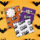 These adorable wrapping paper sheets are perfect for a girly Halloween, featuring a charming Halloween pattern with cartoon-style typography that says "Boo" in black and white, orange and purple- modern colours. Each sheet comes with a different background colour, making them ideal for adding a festive touch to a trick-or-treat party!