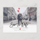 Fun and Funky, Modern Brush Script Save our Date postcard, a red heart with DIY Background colour.