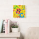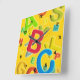 Fun colourful ABC square wall clock featuring a bright modern design with alphabet letters. Perfect for home decor, school classrooms or in the office. Designed by Thisisnotme©