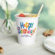 These colourful Birthday Paper Cups feature a joyful design with vibrant, watercolor-style painted script on a white background. Each letter is uniquely coloured, with lively splatters adding a fun touch. Perfect for surprise parties for teens, adults, or kids, these plates add a burst of colour to any celebration. You can even personalise them with your own text to make the cups extra special! They bring an artsy, customised touch to any birthday party event.