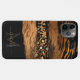 Girly modern animal print in brush strokes with copper, gold, glitter, black and adorned with your script monogram, first name and initial.