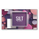 Showcase your brand's creative energy with this fun and modern geometric business card. The design features a playful, layered collage of circles and squares in chic shades of pink, magenta, and plum purple. A unique and eye-catching mix of textures, including sparkling glitter, grainy sand, and smooth solids, gives the card a dynamic and tactile effect. Set against a dark, speckled celestial background, your professional details are highlighted in a bold, solid purple central frame with a clean white border, creating a confident and stylish focal point.