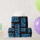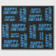 Fill your gifts with colour with this fun and modern wrapping paper. The “Happy Birthday” pattern is designed with letters in marmorized blue tones on a black background.
