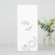 Elevate your reception tables with this minimalist wedding menu card, designed with a graceful blend of delicate script and classic serif typography. The simple “Let’s eat!” heading adds a playful yet refined touch, while the clean layout keeps each course beautifully organized and easy to read.